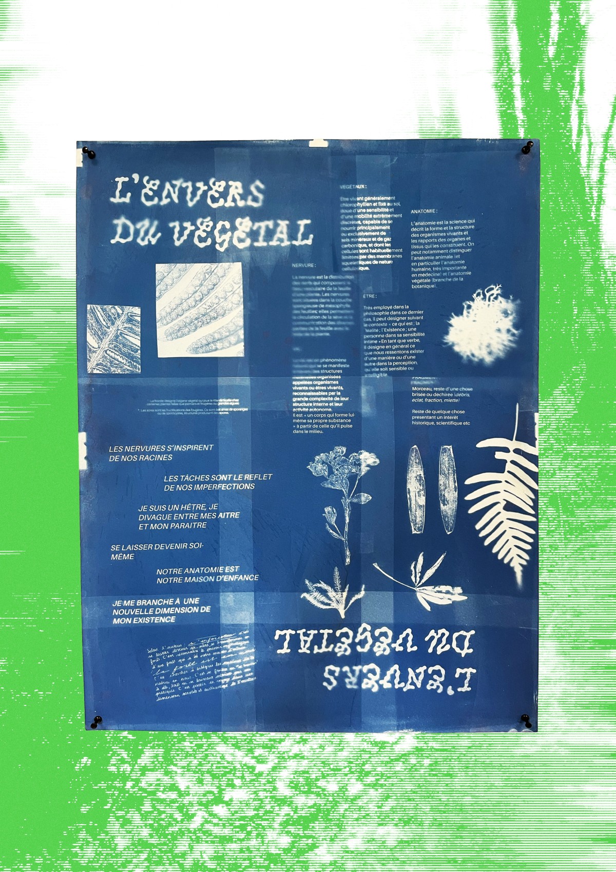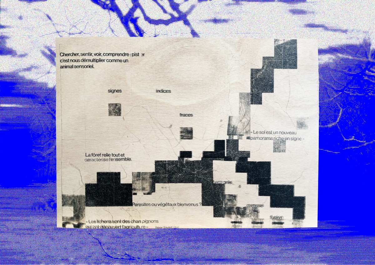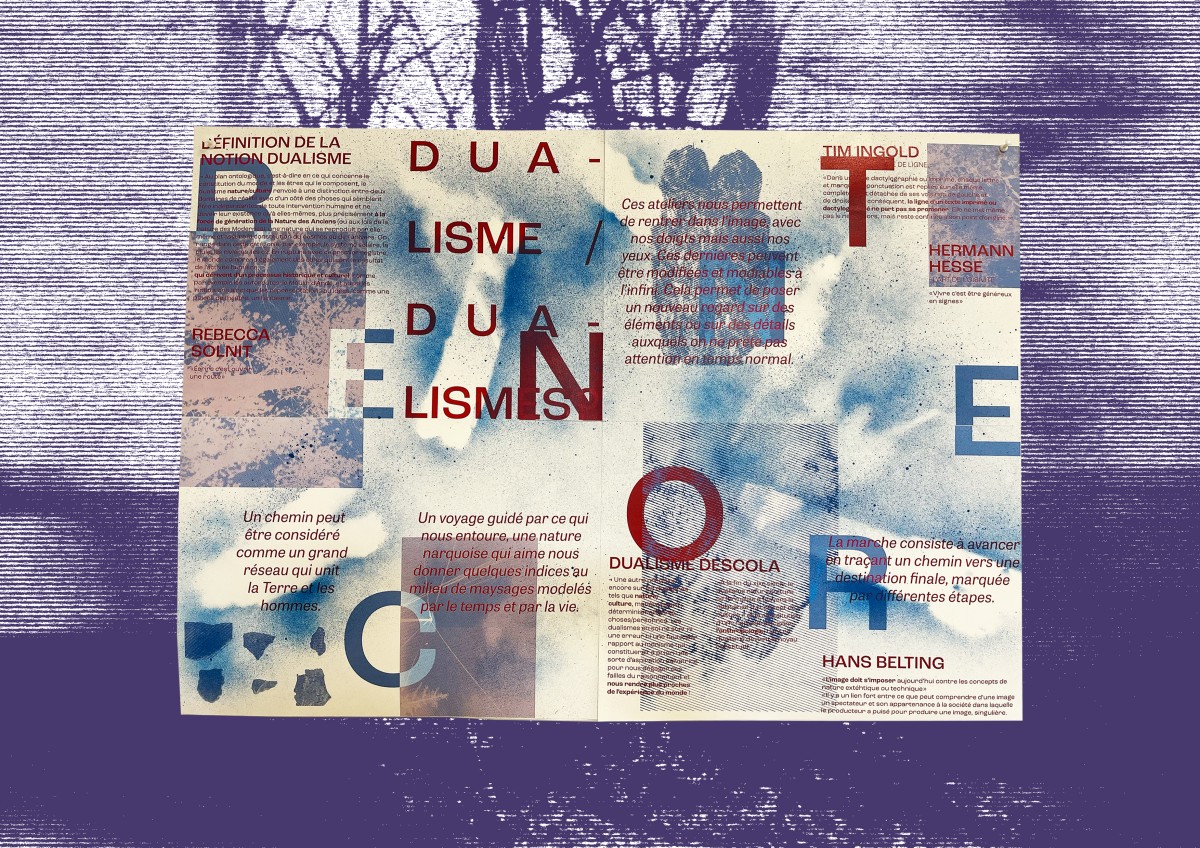 Le projet se construit en deux temps complémentaires. Le premier consiste en un inventaire libre de formes et de formats, issu de l’observation et de la marche. Le second prend la forme d’un travail d’atelier, basé sur une sélection et une mise en relation d’images imprimées, réunies dans un poster, permettant de restituer et de prolonger l’expérience du parcours.